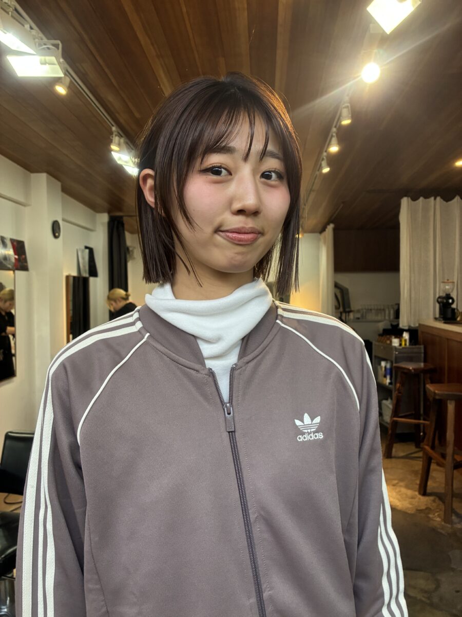 形も丸っぽさを極力とって、大人っぽいタッセルボブに。